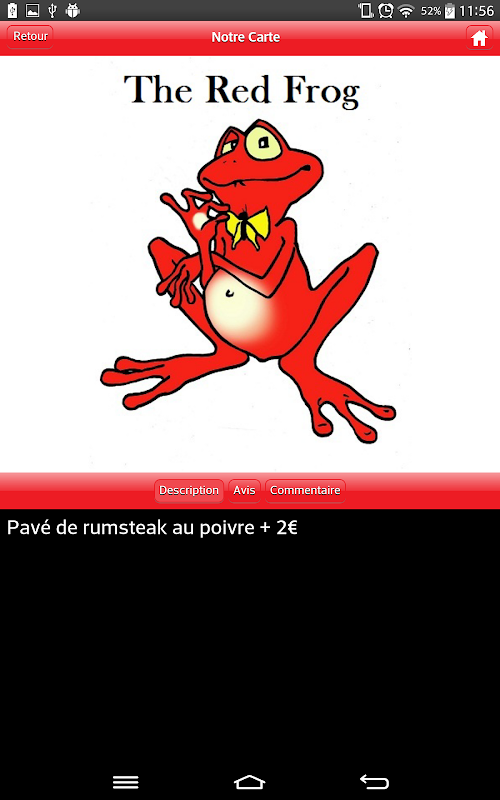 L'application "The Red Frog" vous offre la possibilité de consulter toutes les infos utiles du pub (Tarifs, carte, avis…) mais aussi de recevoir leurs dernières News ou Flyers sous forme de notifications Push.