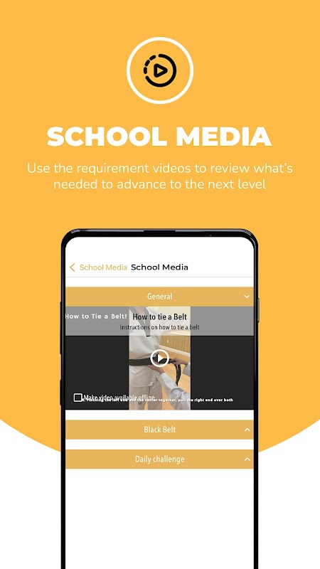 De DOJO-app biedt vechtsportscholen een eigen merkschoolapp. Zodra de basis DOJOApp is geïnstalleerd en u uw staat en school selecteert, zal de app zichzelf configureren met het logo en de inhoud van uw school.