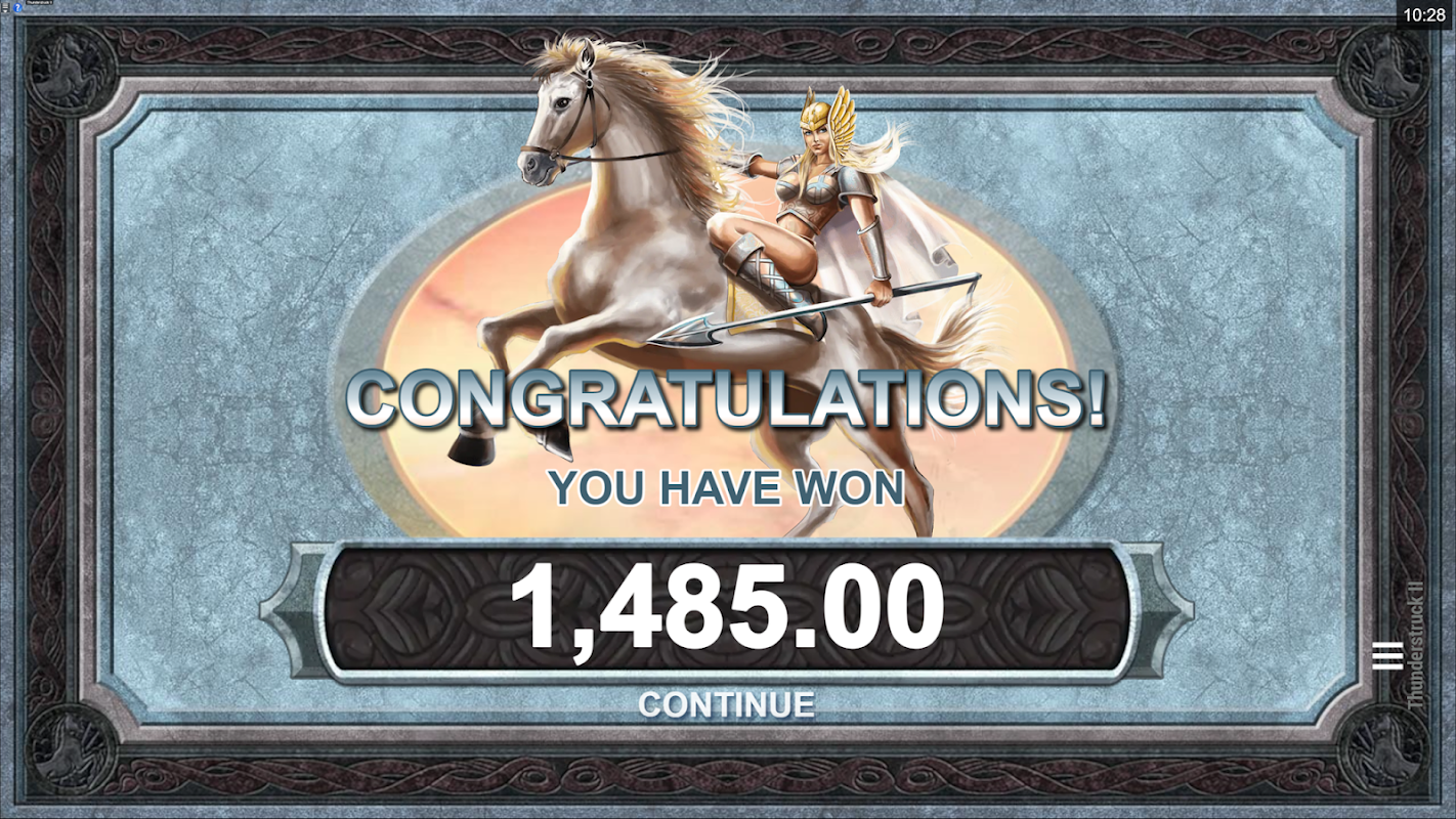 Ascend to the realm of Asgard in search of the mythical top prize worth more than 121,000 coins in 243-way video slot, Thunderstruck II. Wilds, random wilds and a selection of bonus modes await. Play for free with bets ranging from 0.30 to 15 coins per spin. Thunderstruck II offers maximum win on a single bet over 121,000 coins, 5 reels and 243 bet ways. If you’re a fan of innovative bonus modes, you’ll love Thunderstruck II and its multiple bonus rounds. Match three or more hammer scatters, and you’ll be given a choice of up to four bonus modes, depending on how many times you’ve accomplished this. Each bonus mode has its own unique features and number of free spins. Wilds can substitute for any regular symbol, and random wilds also occur. Match three or more Wilds to win up to 50 coins, or three or more Thors to win up to 25 coins.