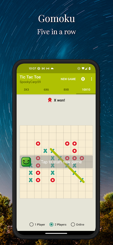Tic Tac Toe & Gomoku met single- (tegen AI), multiplayer- en online spelmodi