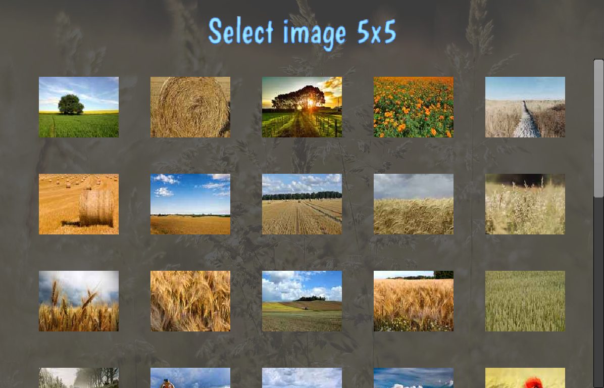 Solve this fields tile puzzle by dragging and dropping the image tiles. You can choose between different puzzle sizes and there are lots of fields images with different difficulties available.