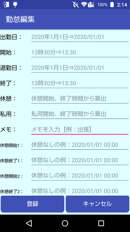 自分で勤怠管理を行うタイムカードアプリです。 働き方改革やサービス残業対策、自分の身は自分で守ろう! 1分単位で勤務時刻を管理!!