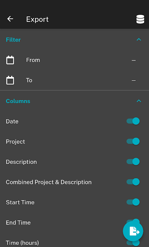 • Exporteer gegevens als een .csv-bestand, gefilterd door tijdschema's en projecten