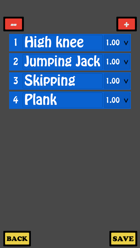 Deze app is opgebouwd met innovatieve functies om uw eigen profiel aan te maken met de lijst met trainingen die binnen de tijd die voor elke training moet worden uitgevoerd. U kunt uw profiel ook instellen op weekdagen met de totale tijd die voor elke oefening moet worden toegewezen. Zodra uw respectievelijke training moet worden gewijzigd in een andere training volgens de tijd die u voor elke oefening heeft ingesteld, zal de app u automatisch waarschuwen door middel van de pieptoon. Ook als u klaar bent met uw training volgens de geplande tijd in uw profiel, zal de app u automatisch waarschuwen dat uw trainingstijd is voltooid. Nu deze app in de winkel direct beschikbaar is, is er geen gedoe meer met het opzetten van uw aangepaste trainingen. U kunt eenvoudig uw oefeningen toevoegen en uw trainingssessie in minder dan 1 minuut opzetten. De toegevoegde functie van stopwatch in de "Time setter" -app * Stopwatch * in deze app is gemakkelijk te gebruiken en heeft een zeer nauwkeurige en responsieve aflezing. Het is handig voor studenten die praktische sporten, koken, hardlopen, studeren, sportschooltraining, thuistraining, meditatie, gamen en al uw werk dat verband houdt met timingbehoeften. De stopwatch begint met lezen met slechts één tik op het mobiele scherm en de timer kan worden gestopt met slechts één tik op het scherm, waardoor elke meting van de stopwatch 100% nauwkeurig is.