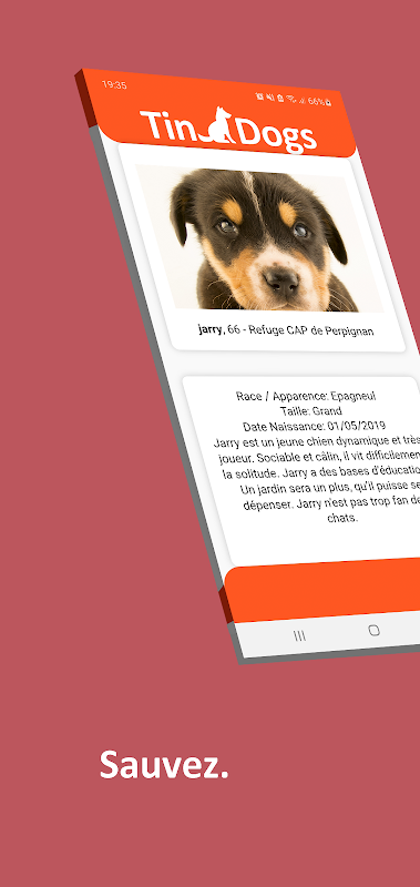 - Swipez sur les différents toutous disponibles à l'adoption.