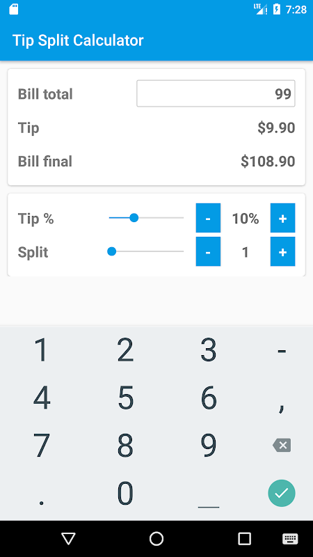 Bereken een tip en / of deel een toevoeging in 2 klikken.
