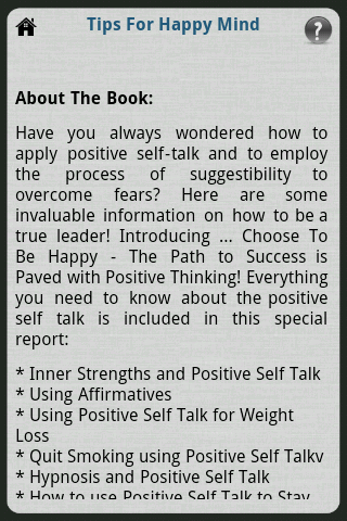 Tips voor Happy Mind - Heb je je altijd al afgevraagd hoe toe te passen positieve self-talk en om het proces van beïnvloedbaarheid gebruiken om angsten te overwinnen? Hier zijn een aantal waardevolle informatie over hoe je een echte leider te zijn! Introductie van ... Kies To Be Happy - De weg naar succes is geplaveid met Positief Denken! Alles wat u moet weten over het positieve zelfbeeld praten is opgenomen in dit bijzonder verslag: