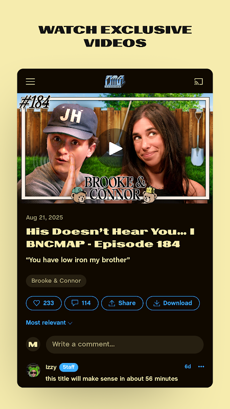 De TMG Studios-app geeft je volledige toegang tot alles van TMG Studios. Blijf op de hoogte van de nieuwste video's, strips, audio en alle andere content van TMG Studios. Word lid van een lidmaatschapsniveau voor exclusieve toegang tot bonuscontent, advertentievrije afleveringen, exclusieve merchandise en een community die net zoveel van TMG Studios houdt als jij.