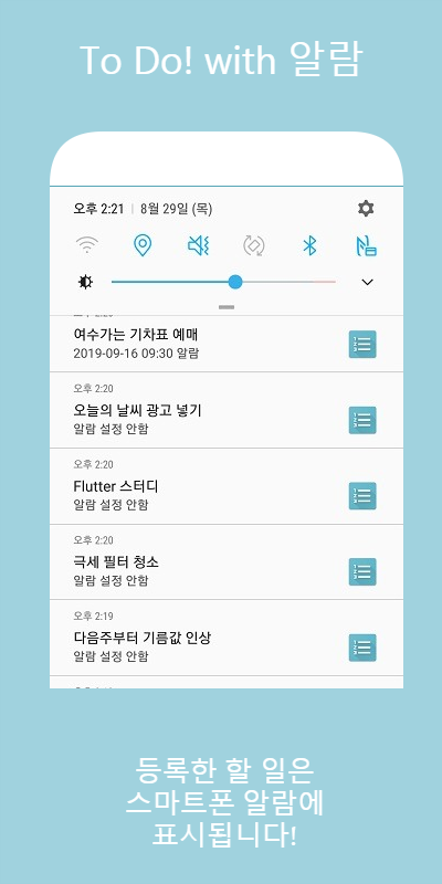 √ 등록한 할 일은 스마트폰의 알람창에 등록!