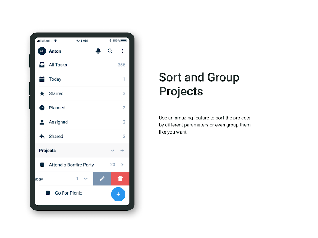 Gebruik een geweldige functie om de projecten op verschillende parameters te sorteren of zelfs te groeperen zoals je wilt.