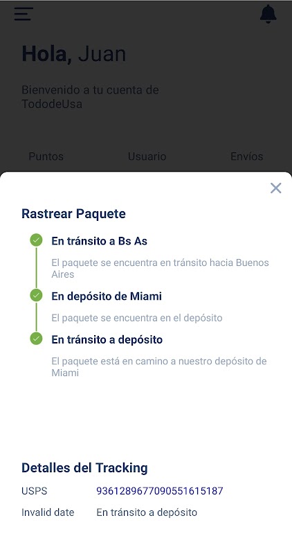 Via uw account kunt u altijd de online status van al uw pakketten zien totdat ze aankomen in Buenos Aires.
