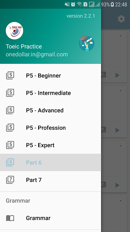 - This application helps people improve English Grammar skill with 104 tests of Toeic Part 5, 29 tests of Toeic part 6 and 7.