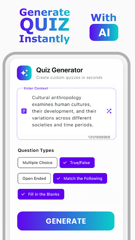 Met onze AI Quiz Generator wordt leren sneller, gemakkelijker en interactiever dan ooit tevoren.