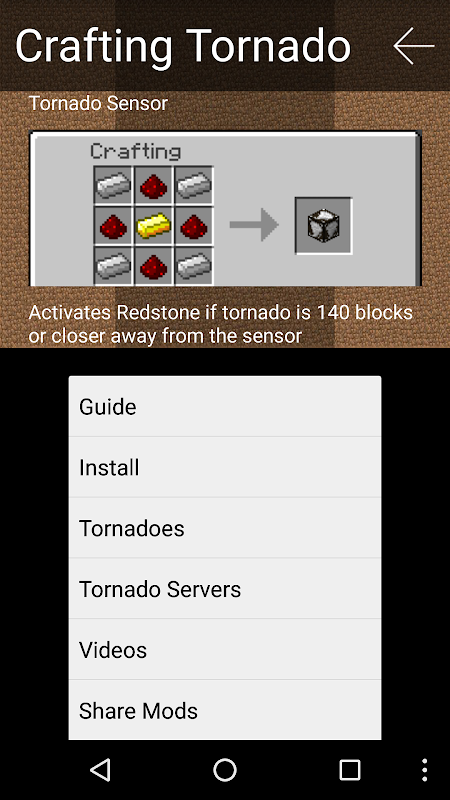 This app shows you how to get Tornado MOD which adds Tornadoes, Cyclones, Hurricanes and other weather conditions in your Minecraft PC world.