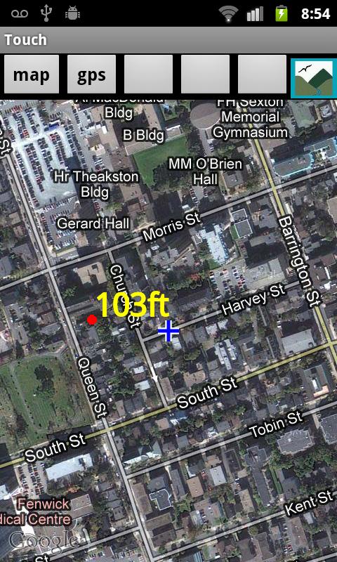 Using the Touch Elevation app, you are able to tap any point on the map and the elevation of that point will be displayed.