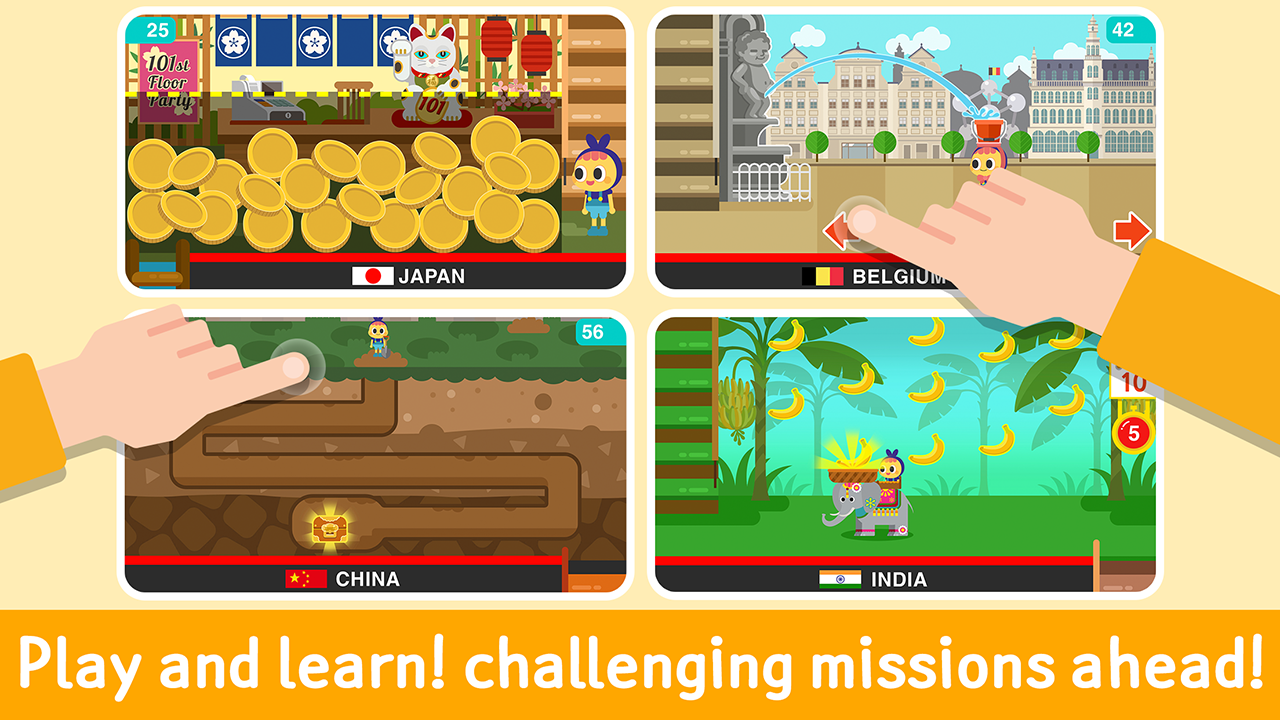 ‘TOWER101’ is where Popo chases after a criminal who broke Popo’s ice cream and who is now on the 101st floor. It is a 101 story building in which people from 25 countries live together! You can experience different cultural activities from around the world by climbing up and down the stairs. From each country, you can earn a badge of that country’s flag by accomplishing a mission. In total, you can earn up to 25 badges. Without realizing, you will be on the 101st floor while experiencing 101 cultural activities of the world! Will Popo be able to find the criminal? Don’t forget about some of the hints your friends from different countries will tell you!