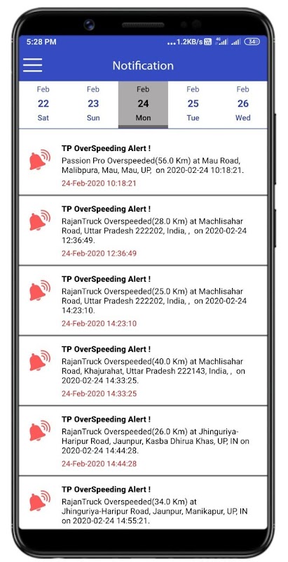 Met de TPSAdmin-app kunt u de live positie van al uw voertuigen op een kaart volgen, samen met het huidige adres. U kunt ook informatie bekijken zoals de huidige snelheid van het voertuig, adres, ontstekingsstatus, GPS-signaal en GPRS-connectiviteit.