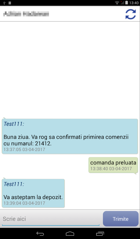 When the driver is on the field he can transmit to the dispatcher, in real time, information concerning the delivery or the acquiring of orders, of unforeseen events that can occur on route, the deviations from a preset route or any other issues that can occur during the transportation. He also has the possibility to answer directly inside the application to the messages that come from the dispatcher.