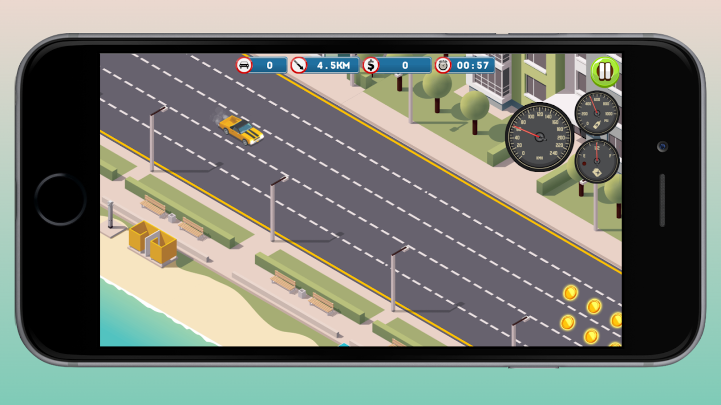 In this game you have to drive your car in the middle of the traffic so you can make the score and complete the challenge and also watch out for the incoming vehicles and many other obstacles which can make your car crash collect many powerups to boost the speed and coins!