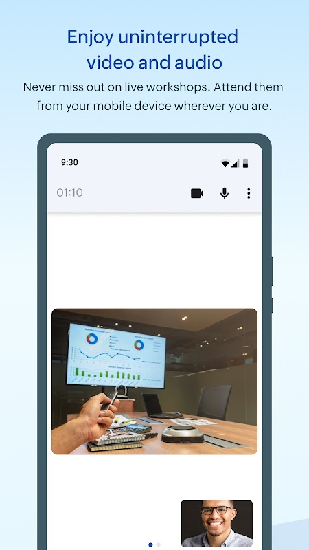 * Laat je vragen beantwoorden door je trainer en mededeelnemers in live sessiechats.