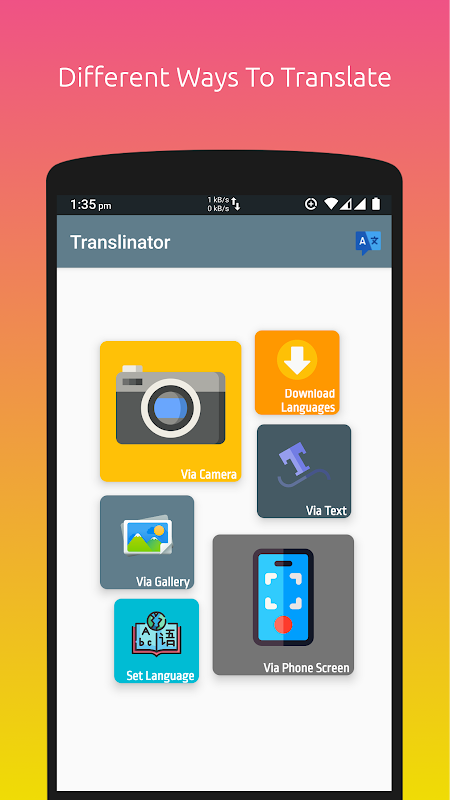 All in one translation app, all you need in your traveling or whenever you face difficulty in understanding some very different language. This app removes the language barrier amongst people around the world. This app is a courier for the transmission of knowledge, and thoughts.