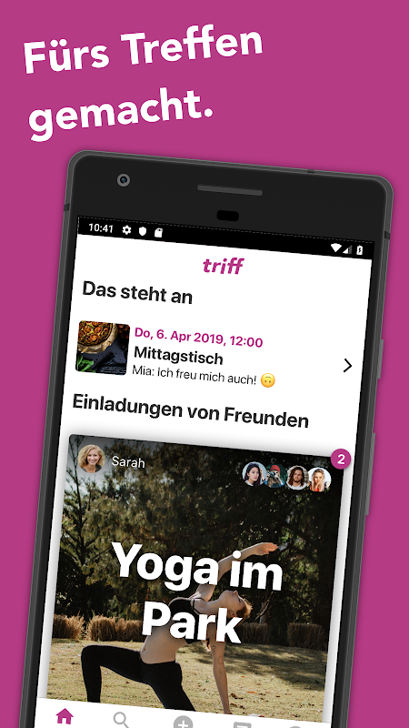 Sommige gelegenheden hebben uitgebreide uitnodigingen nodig. En soms is een enkele zin voldoende. Dat is waarom Triff beide beheerst. Als je snel wilt gaan, noteer wat je wilt doen, kies je een achtergrond en druk je op Verzenden - klaar. Moeten uw gasten meer weten? Voeg vervolgens details toe zoals locatie, duur en bijdrage.