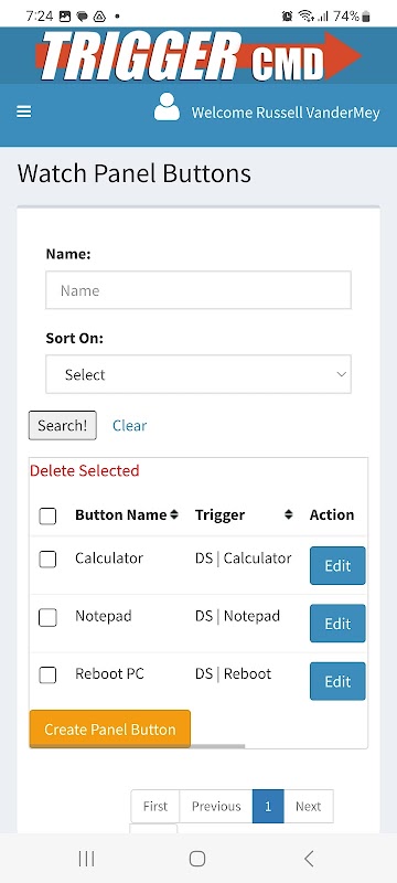 Maak een paneel met de naam "Watch" in uw account op triggercmd.com.