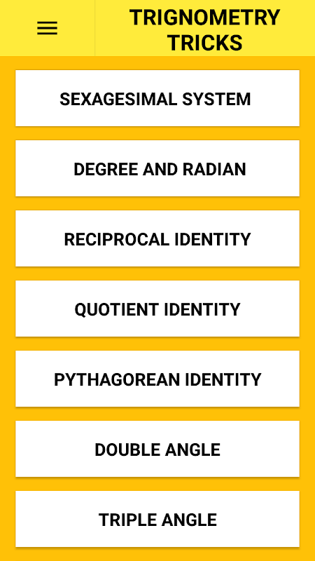 The main intension to bulid this app is that to give students an easy and tricky way to learn trignometry formulae..