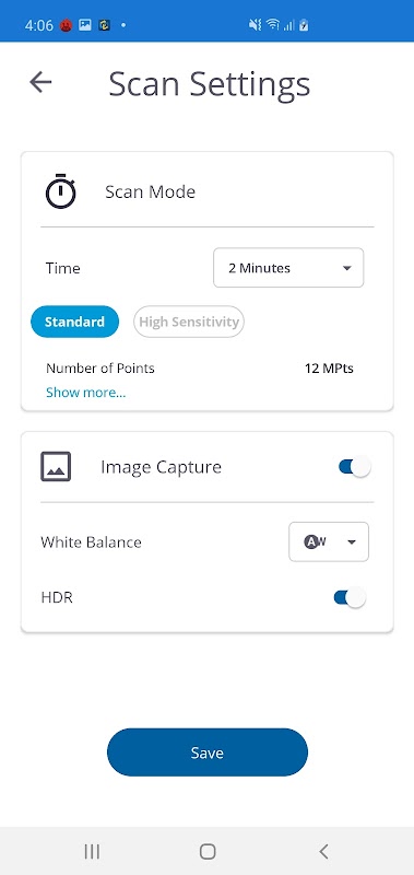 Om deze applicatie te gebruiken, moet de Trimble X7 AAN staan en beschikbaar zijn binnen het Wi-Fi bereik van het mobiele apparaat. De eerste keer dat de applicatie de gebruiker vraagt om verbinding te maken met de wifi van de scanner via de wifi-instellingen van de iPhone met het wachtwoord dat aan hen is gegeven. Na een succesvolle verbinding wordt de gebruiker naar het startscherm van de applicatie geleid en heeft hij toegang tot verschillende functies in de app.