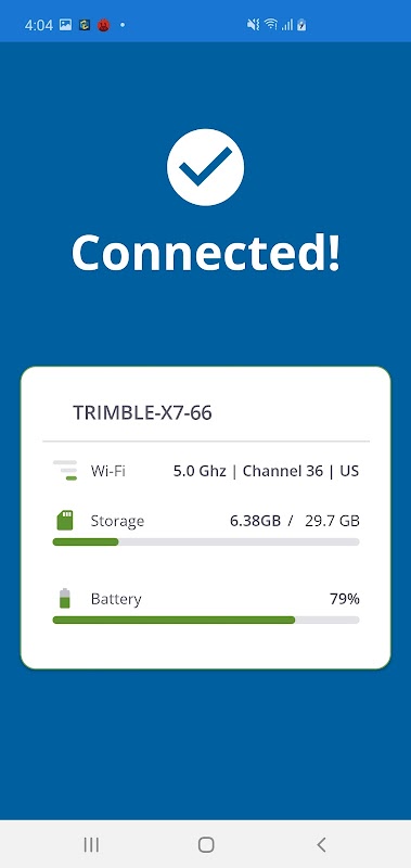 De applicatie wordt gebruikt om verbinding te maken met de Trimble X7 3D Laser Scanner om het instrument te bedienen en scans te beheren. De app is alleen bedoeld voor gebruik met de X7 Scanner.
