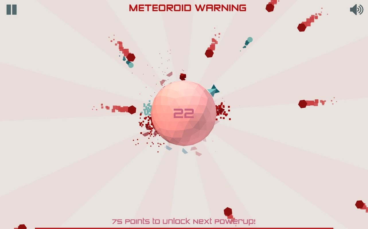 - Collect blue meteoroids for points, new weapons, power ups and coins.