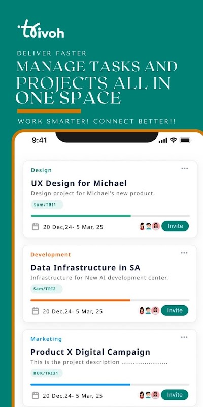 Vervang meerdere abonnementen met Trivoh's complete samenwerkingsplatform, ontwikkeld voor wereldwijde teams en geoptimaliseerd voor regio's met onbetrouwbare internetverbinding.