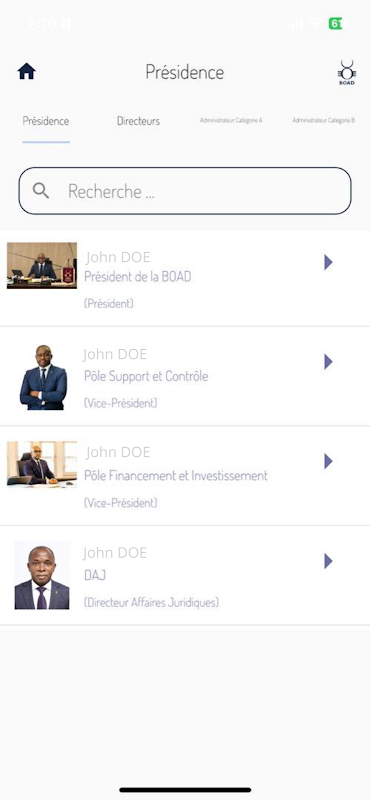De BOAD Trombinoscope-applicatie is een innovatief hulpmiddel dat is ontworpen om de communicatie en samenwerking binnen de West-Afrikaanse Ontwikkelingsbank te vereenvoudigen. Met deze gebruiksvriendelijke applicatie kunnen BOAD-medewerkers snel de gezichten en belangrijke informatie van hun collega's bekijken, waardoor een betere interactie binnen de organisatie wordt bevorderd.
