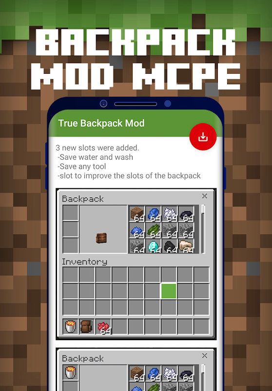 True Backpack Add-on voor Minecraft PE is gratis downloadbare content voor Minecraft Pocket Edition-game, waar je automatisch de nieuwste versie van True Backpack-mod in je Minecraft-wereld kunt downloaden en installeren.