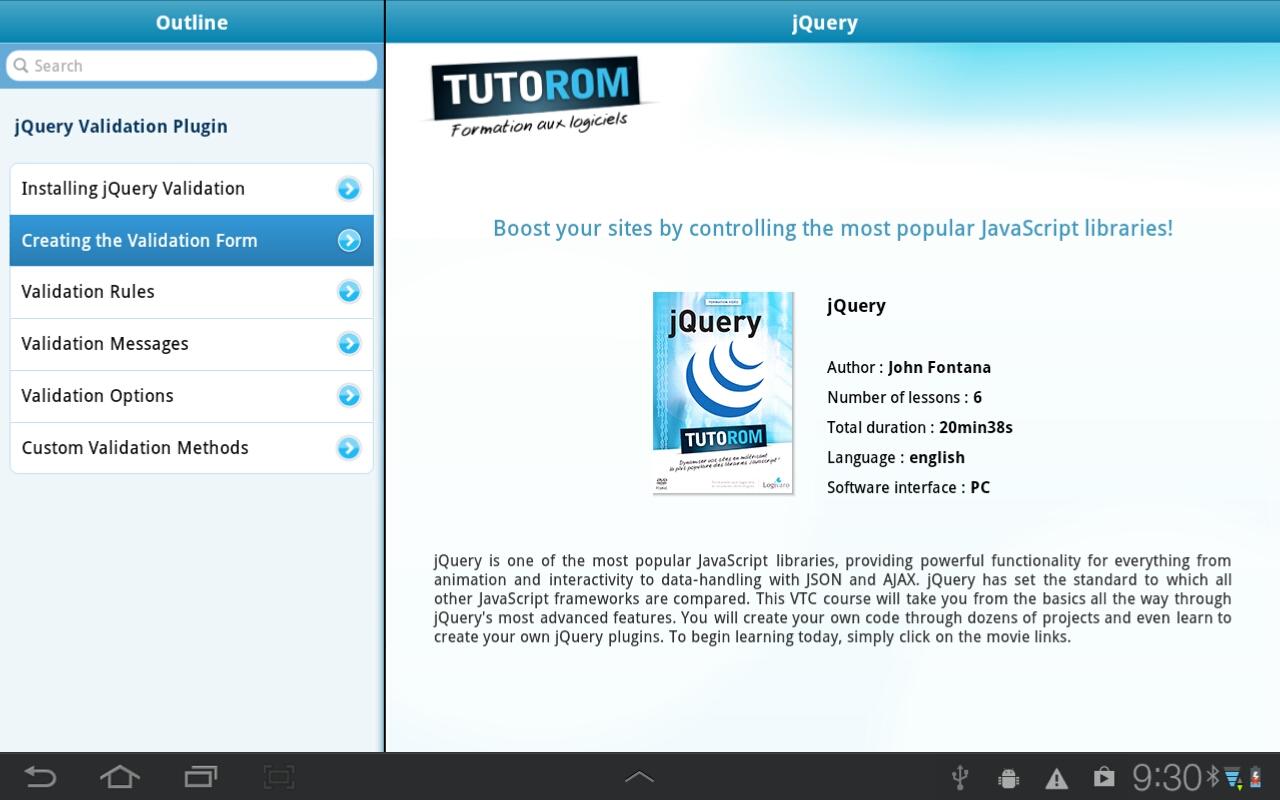 jQuery is one of the most popular JavaScript libraries, providing powerful functionality for everything from animation and interactivity to data-handling with JSON and AJAX. jQuery has set the standard to which all other JavaScript frameworks are compared. This VTC course will take you from the basics all the way through jQuery's most advanced features. You will create your own code through dozens of projects and even learn to create your own jQuery plugins. To begin learning today, simply click on the movie links.