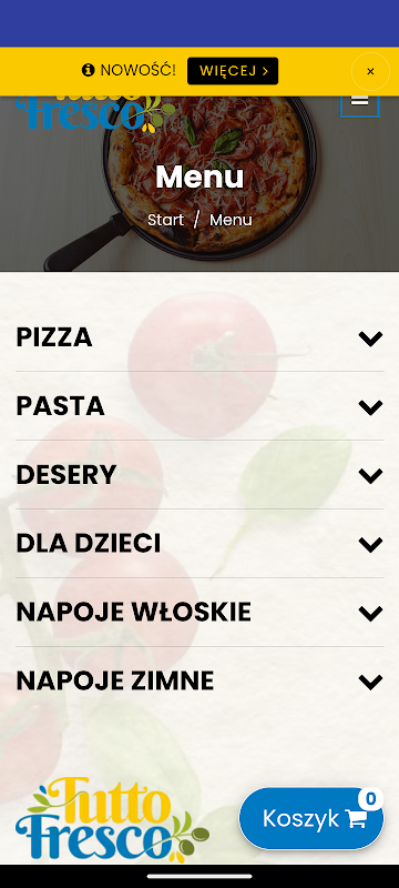 Aanvraag voor het bestellen van eten bij restaurant Tutto Fresco in Świdnik. Wanneer u eten bestelt via onze applicatie, kunt u het huidige menu en de promoties bekijken. U kunt ook informatie vinden over openingstijden of contactgegevens van restaurants en nog veel meer.