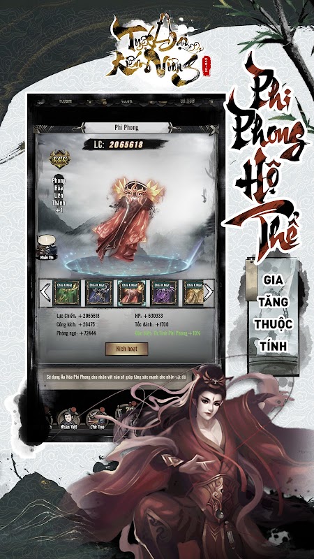 Phi Phong heeft een sprankelend uiterlijk en onthult de majesteit en majesteit van de drager. Als uitrusting met buitengewone eigenschappen wordt Phi Phong beschouwd als een geheim wapen dat door de straten zwerft en de kracht en het vechtvermogen vergroot.