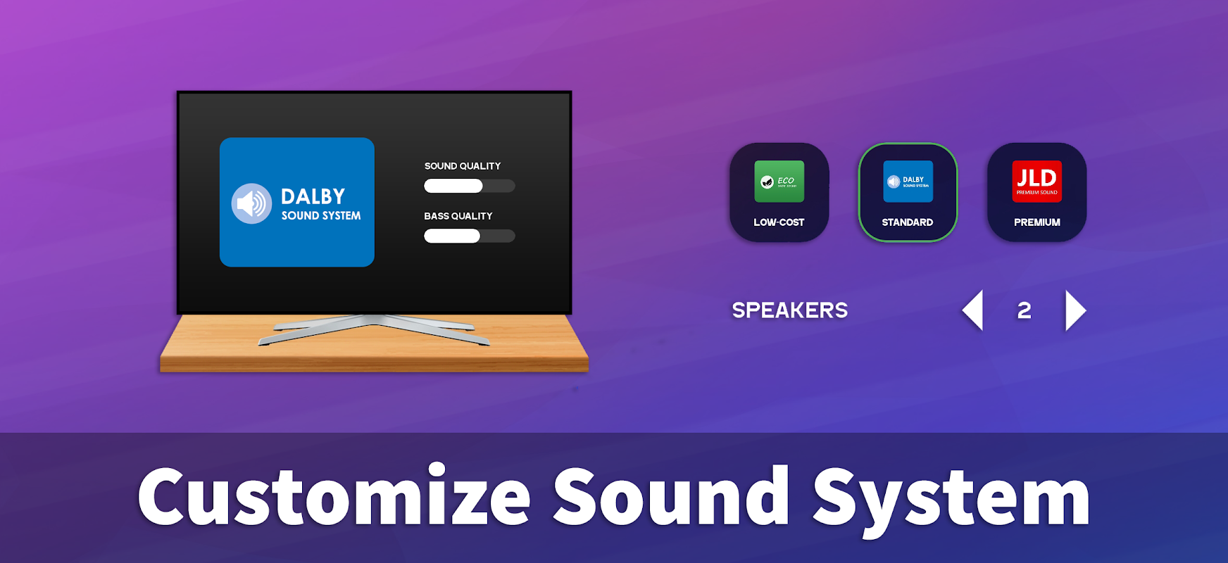 Bouw je tv-imperium! Ontwerp, upgrade en verkoop op maat gemaakte televisies in TV Tycoon.