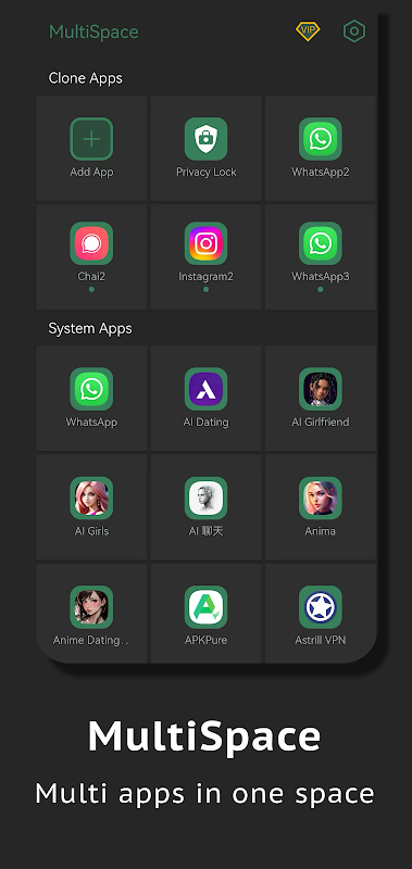 MultiSpace biedt u een krachtige parallelle ruimte. U kunt elke app vanaf uw telefoon naar de kloonruimte klonen en de parallelle app gebruiken om tegelijkertijd in te loggen op meerdere accounts van één app.