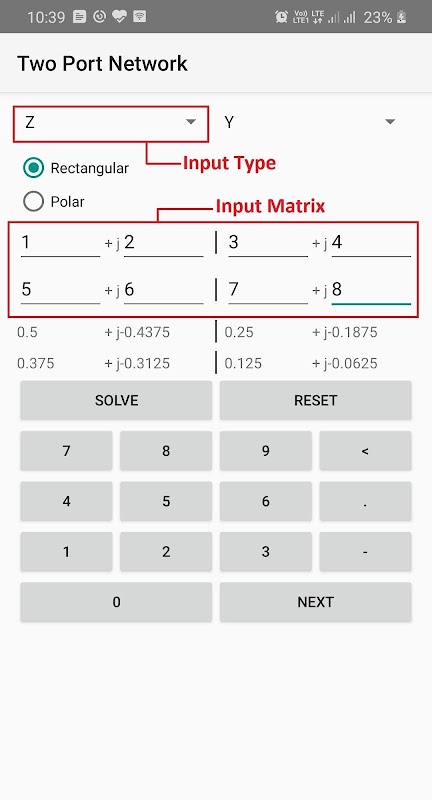 Deze app kan een parametermatrix met twee poorten (in rechthoekige of polaire vorm) accepteren. Vervolgens wordt de matrix omgezet in elke gewenste parameter (d.w.z. Z, Y, T, T ', H of G).