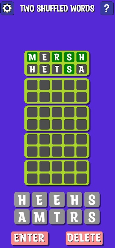 Two Shuffled Words is a fun and exciting game. The goal is to take the 10 letters you have been given and solve the 2 words.