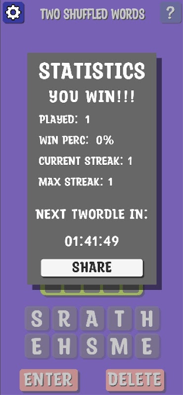 Two Shuffled Words is fun with friends and family so remember to share the game and see who can solve the 2 words first and get the highest streak.