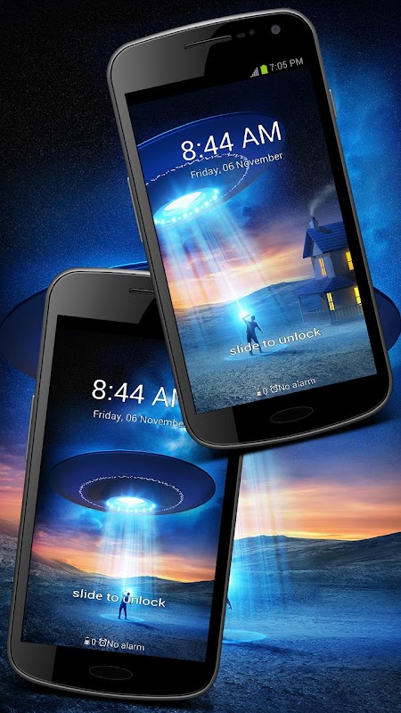 De sterrenkunde en ruimtevaart is de meest interessante wetenschap op de wereld. Iedereen wil het antwoord op de vraag weten - heeft iedereen die buiten ons in het heelal? Zijn ze vriendelijk? Of misschien kwaad en slecht? Dit thema toont koele ruimteschip naast een chalet. Onder het ruimteschip staat een man. Hij moet doodsbang zijn. Vreemdelingen zijn zo dichtbij. Zullen ze hem te ontvoeren? Ze weten niet ons als we ze niet weten. Als je van de kosmos, UFO en ruimteschepen deze app kan het beste voor u zijn.
