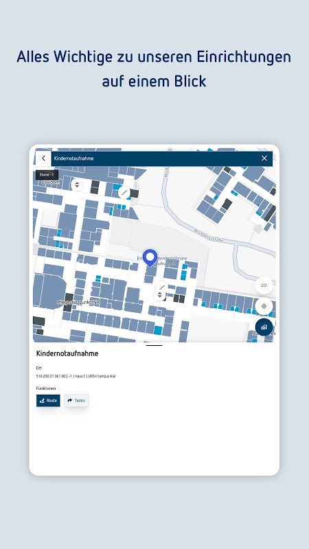 De UKSH-app: ziekenhuisapplicatie voor het Universitair Ziekenhuis Schleswig-Holstein met zijn locaties in Kiel en Lübeck.