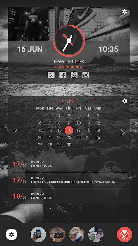 - News Card, where you can read the 5 latest News from your favourite RSS Feed
