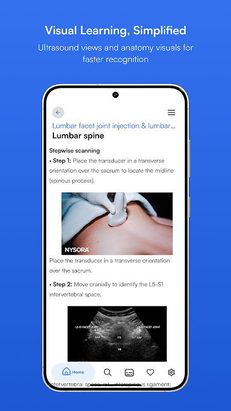 De US Pain App, ontworpen door NYSORA, brengt duidelijkheid en gemak in de pijngeneeskunde met praktische, casusgerichte content. Of u nu een van de 58 technieken wilt herhalen of op zoek bent naar visuele ondersteuning in de praktijk, deze app biedt een gestructureerde, visuele manier om pijnprocedures te begrijpen en toe te passen.