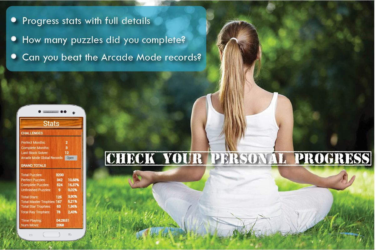 • Globale statistieken, waarbij u uw tijd of uw bewegingen voor elke opgeloste puzzel kunt zien, niet tegen specifieke gebruikers, maar tegen een veel vriendelijker mondiaal gemiddelde.