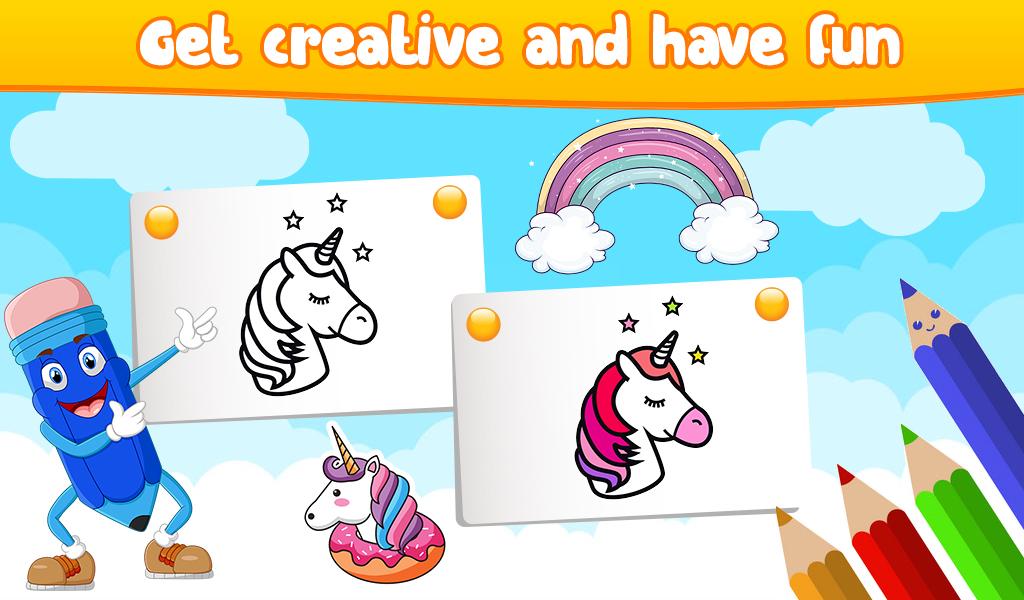 It's time for some fun educational activities, these days are very important because we can learn new things, you can spend every hour to color some beautiful unicorns. This coloring book app for kids is the perfect way to have fun, it is a good option for kids, toddlers, and preschool children. With this game you can learn to identify all the colors, you can learn to color inside the contour and develop your attention and imagination.