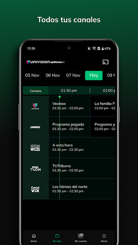 • Als u uw favoriete programma's op Univision, UniMás, Galavisión en TUDN heeft gemist, kunt u ze nu op aanvraag bekijken, een dag nadat ze zijn uitgezonden.