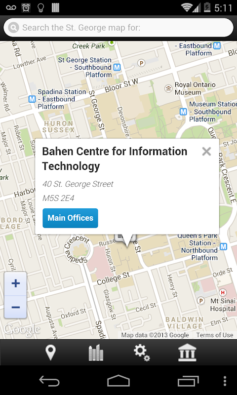 Deze Google-gebaseerde, gelaagde kaart ontworpen voor de Android helpt leden van de U van T-gemeenschap, in het bijzonder mensen die nieuw zijn op de campus (St. George, Mississauga of Scarborough), navigeren met behulp van betekenisvolle trefwoorden, zoals "bibliotheek" en "registrar". De eerste kaart lagen onder meer toegankelijkheid, voedsel, draadloze, studentenvoorzieningen (inclusief registrars), parkeerplaatsen, fietsenrekken, TTC metrostations, groene sites (met inbegrip van groene daken en batterij drop-off sites), veiligheid, studieplekken en toiletten. De kaart bevat een compleet overzicht van alle gebouwen met informatie over de kantoren en diensten die beschikbaar zijn binnen hen. Het is een levende kaart, die meer lagen verloopt zoals het groeit.